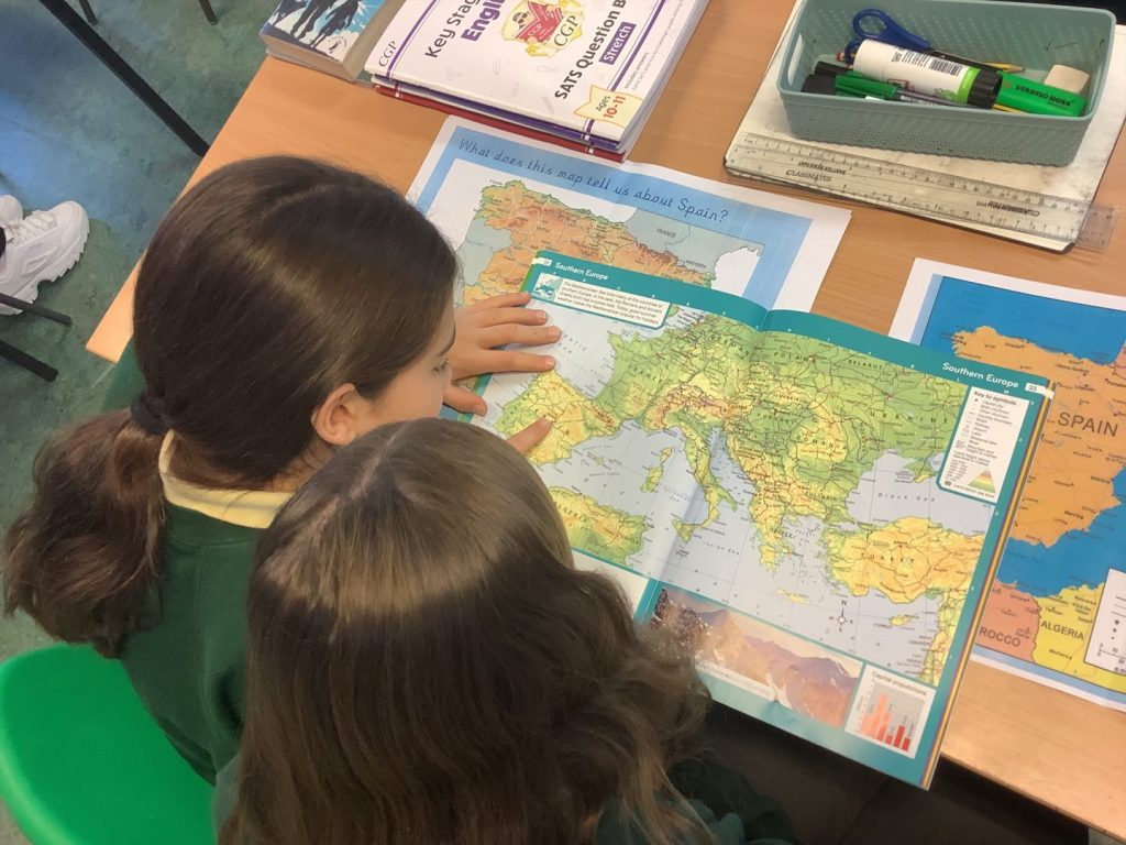 Year 6 have been exploring Spain and its position within Europe. They used map-reading skills to locate the country and explored how its climate and landscape influence tourism.