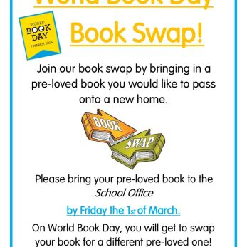 We will be holding Book Swap on World Book Day! To take part, all you need to do is bring in a pre-loved book you do not read to the office in exchange for a token by Friday 1st March. This token can then be used to choose a pre-loved book of your choice donated by others! For further details, please see poster attached.