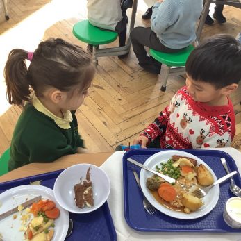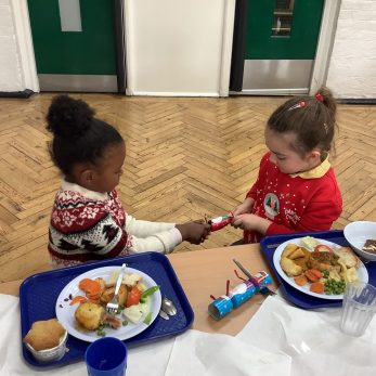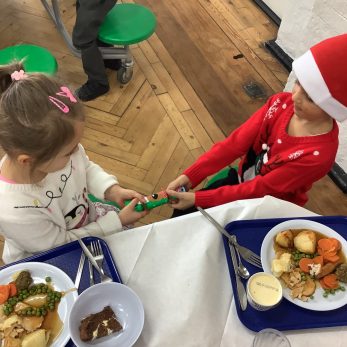 The children in early years were in full festive spirit during Christmas jumper day, where they enjoyed a lovely Christmas lunch and had fun pulling Christmas crackers with their peers.