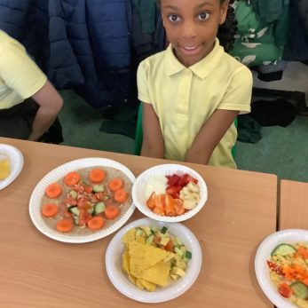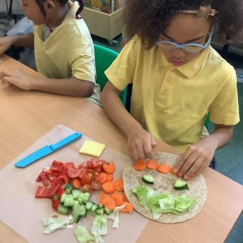 Year 2 enjoyed creating their healthy packed lunch for DT Day. First, they researched what makes a balance diet and the 5 food groups.  They then designed their packed lunch thinking carefully about the ingredients. They then used their chopping, cutting and grating skills to make their lunches ensuring presentation was brilliant. Finally, they got to try their meals, which was their favourite part!