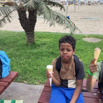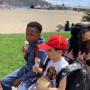 Today our pupils enjoyed a well-deserved day at Playa de Las Americas where we were welcomed by a Viking Boat docked at its port. During our trip by coach to the south of the island, we were surprised by the rain. Children learned how microclimates directly influence the island’s landscapes. In the north, there is lots of greenery thanks to the lush mountain landscape. In the south, the landscapes are more arid.  What’s more, we learned that it snowed on El Teide volcano last night! Pupils enjoyed their time at the beach, jumping waves, playing with the sand and enjoying the sunshine with their new friends. After our picnic lunch, we got to spend our last Euros on souvenirs. Bracelets, keyrings and lagartos (toy lizards) were the most popular. After that, it was time for the most anticipated treat of the trip, el helado delicioso! (delicious ice-cream) We have now all packed and are ready to make our way back to the UK, bursting to share the wonderful experiences, knowledge, skills and memories with our families and friends. Hasta mañana! (see you tomorrow).