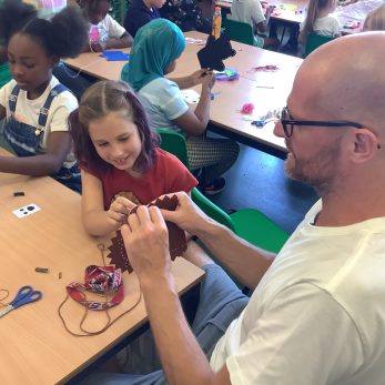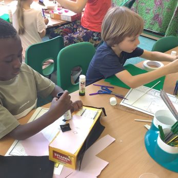 EYFS and Nursery enjoyed DT Day with parents where fun tasks were completed. EYFS created superhero masks using textile materials, Year 1’s built magnificent houses with reused cardboard boxes and Year 2’s sew puppets and performed a puppet play at the end of the day!