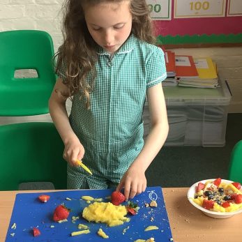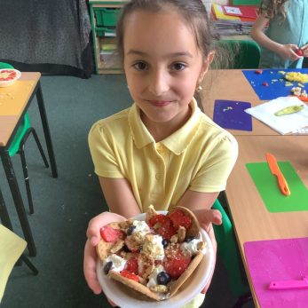 KS2 had an exciting DT Day joined by parents where many fun activities were completed. Year 3’s made delicious fruit desserts, the Year 4’s, 5’s and 6’s assembled electrical circuits, built animal themed lampshades and also constructed magnificent waterwheels.