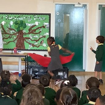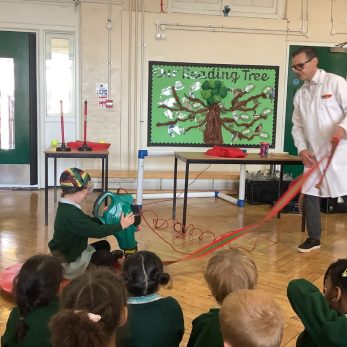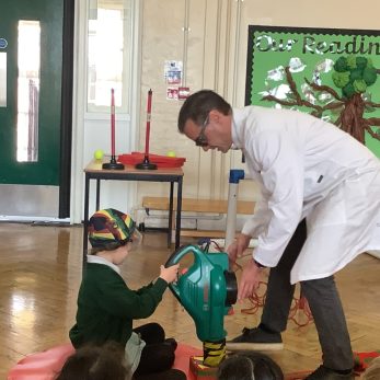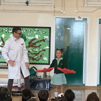 EYFS and KS1 had an enjoyable Science Assembly where they learned about friction and gravity. They completed fun activities such as going on a hover board operated by a leaf blower, tested gravity by pulling a table cloth without dropping any items onto the floor and placed antennae’s on their heads.