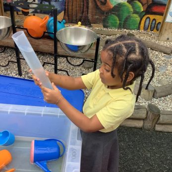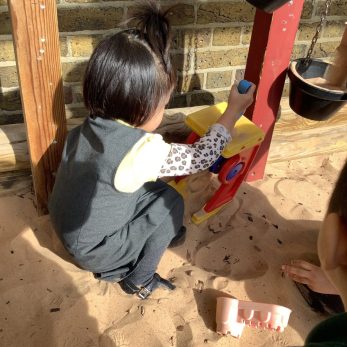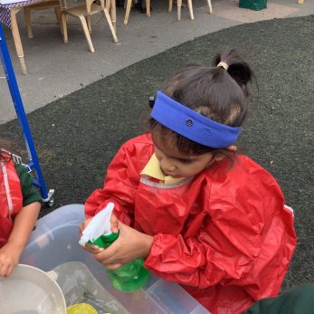 EYFS have been busy exploring their outdoor area playing in the water tray, sand pit and mud kitchen!