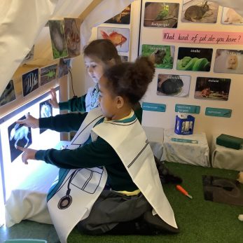 The children in EYFS have been busy role playing in their new veterinary clinic. They have explored what vets do and why it is important to look after animals and protect our wild life. They’ve also been looking at x-rays to find out what may be wrong with a pet and then applying the appropriate medical care to nurse the sick animals back to health.