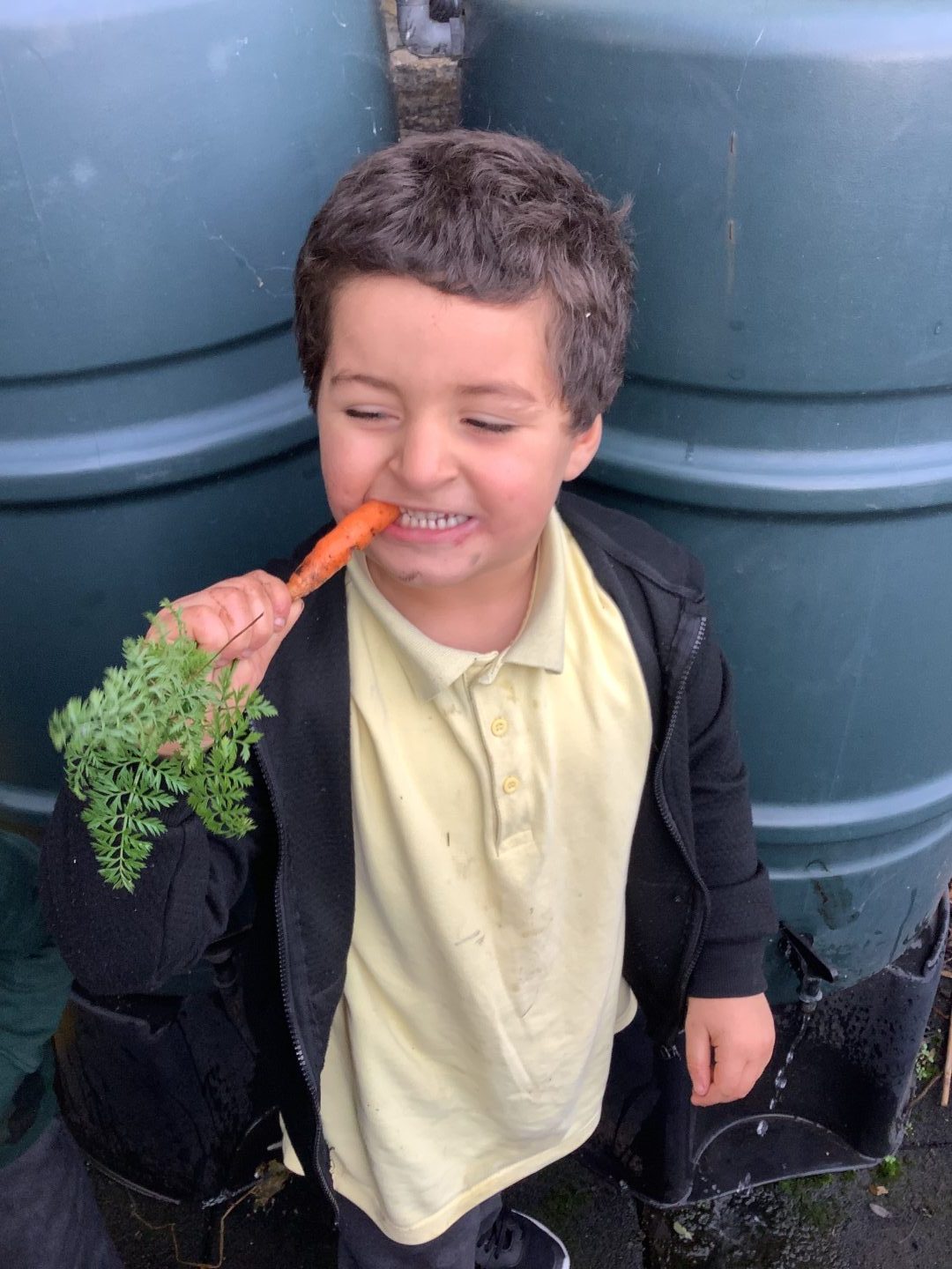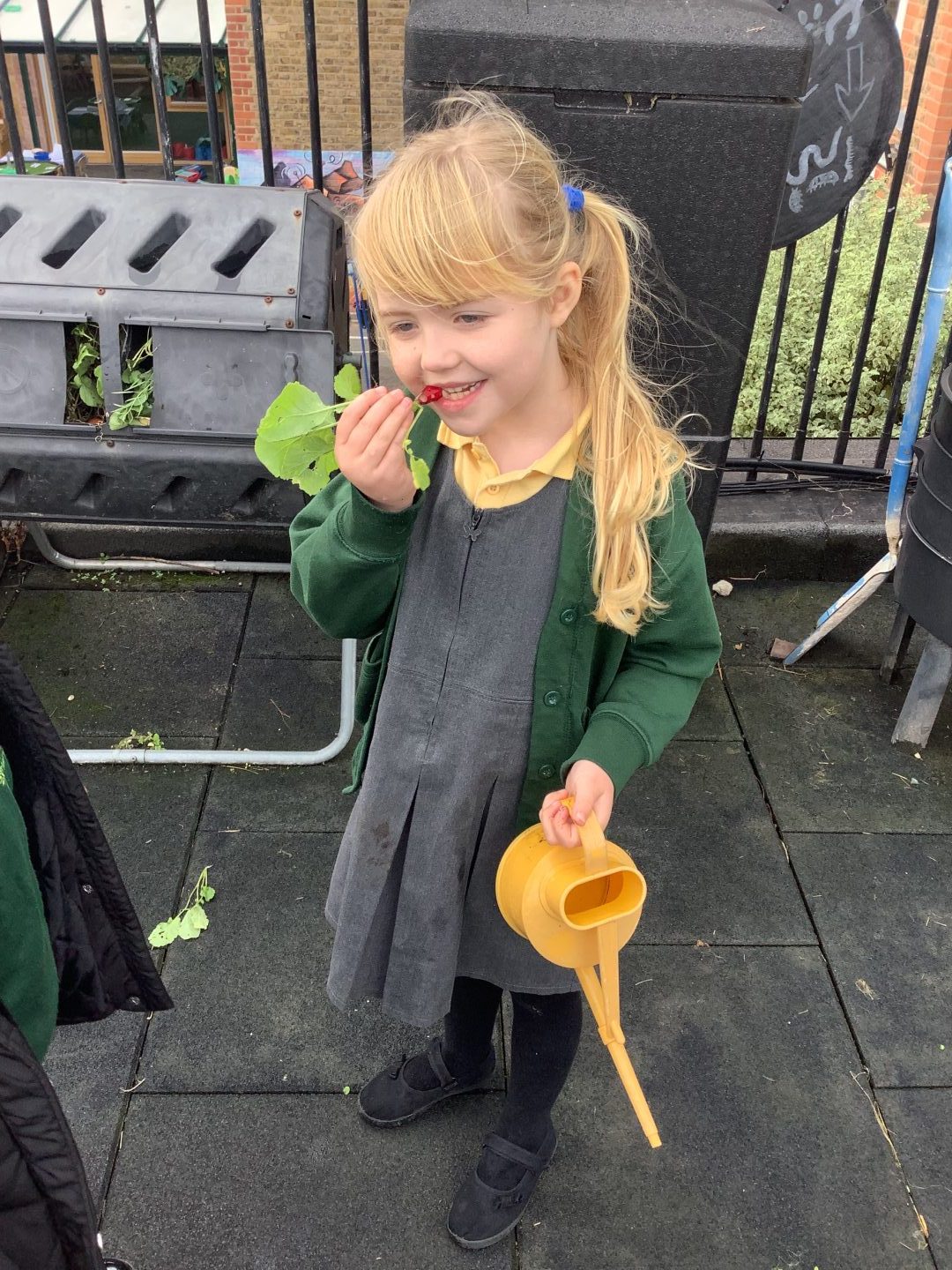 Year 1 had a fantastic time at their gardening workshop. They explored edible plant parts: the stems, leaves, seeds, fruits and roots. They even got to taste them in the garden!
