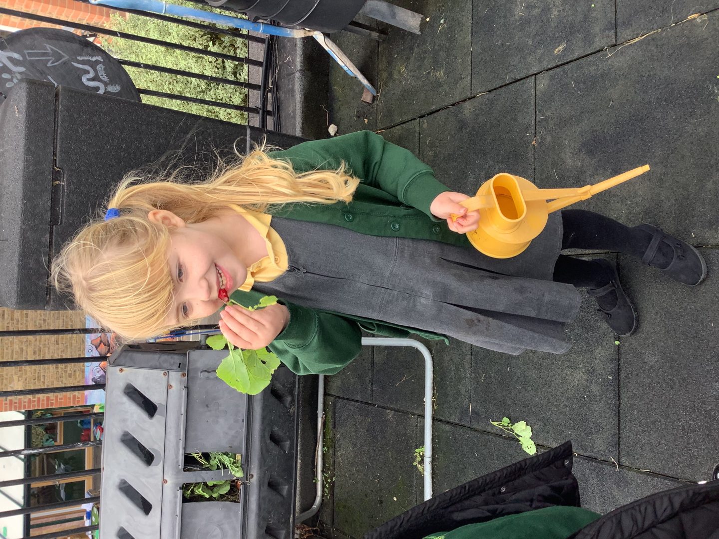 Year 1 had a fantastic time at their gardening workshop. They explored edible plant parts: the stems, leaves, seeds, fruits and roots. They even got to taste them in the garden!