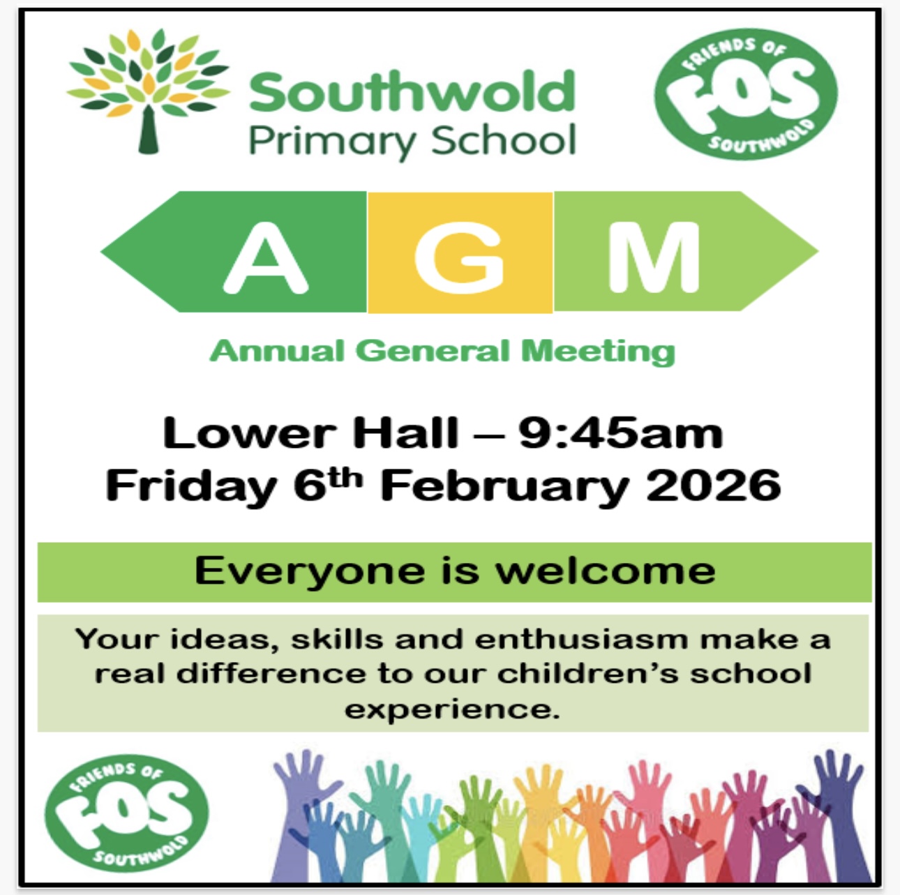 This is a reminder that the Annual General Meeting will take place on Friday 6th February 2026 at 9:45am in the Lower Hall. Everyone is welcome, and your ideas and involvement matter.