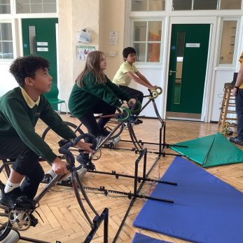 Pupils from years 4, 5 and 6 took part in auditions to join the school cycling competition. They enjoyed riding electric roller bikes that tracked their speed and stamina!