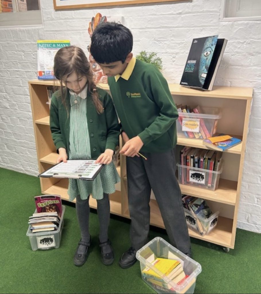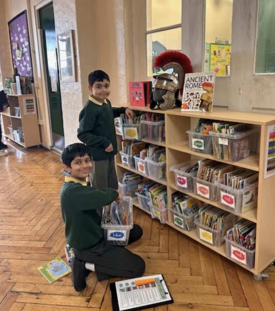 Our KS2 librarians have been working hard to audit and organise reading resources across the school. By keeping books tidy and well presented, they are helping everyone choose books to enjoy at home.