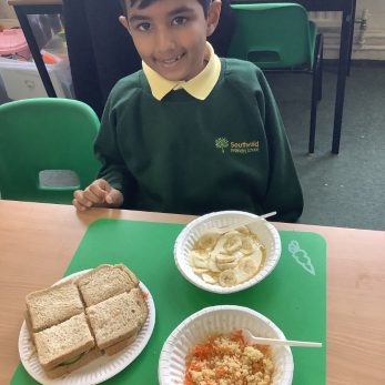 Year 2 enjoyed creating their own healthy pack lunch for DT day. They learnt the importance of a balanced diet and had the chance to design and create their own lunch, developing their chopping, slicing and grating skills.