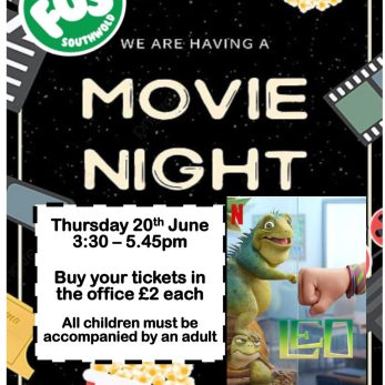 Parents/Carers, join us for Movie Night at Southwold on Thursday 20th June! A fun evening of entertainment and snacks with friends and family. Tickets are available at the main office on a first come first serve basis. Please see further details on the poster attached.