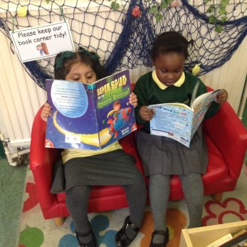 Although we have not been able to invite parents in to read on Friday mornings, we still use the time for children to read. As you can see the children really enjoy reading with their friends!