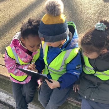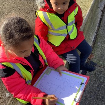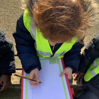 Reception children have been learning about their local area by looking at the school from aerial views. When they go on trips to the park, they use the maps they’ve drawn of their environment to lead them back to school.