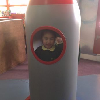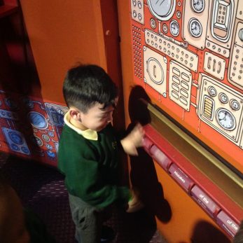 Reception classes visited Discovery in Stratford. They learned about story telling and made their own story about ‘Crocodile in the Swimming Pool.’ Then they told the story to Hooter, an alien, who lives on Squiggly Diggly planet!