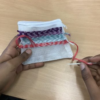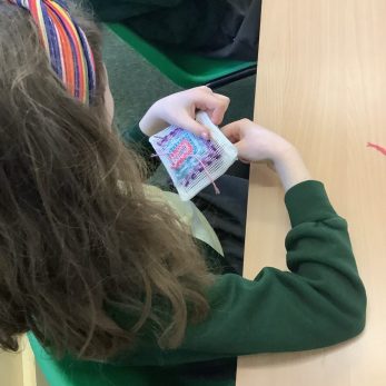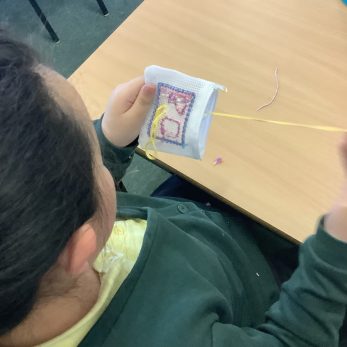 Sewing club have been busy customising their own purses! They used a range of different coloured threads to create beautiful patterns using the running and cross stitch method.