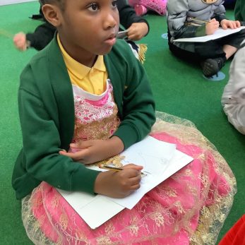 Year 6 enjoyed their visit to London College of Fashion They explored costume and prosthetics, designed climate change themed carnival outfits and confidently shared their ideas with the group!