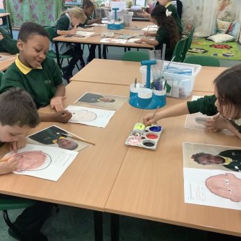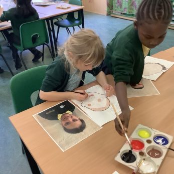 Year 1 have been creating portraits in Art. Using their artistic skills, they mixed a range of primary colours to paint realistic skin tones and facial features of their partners.