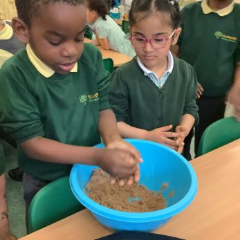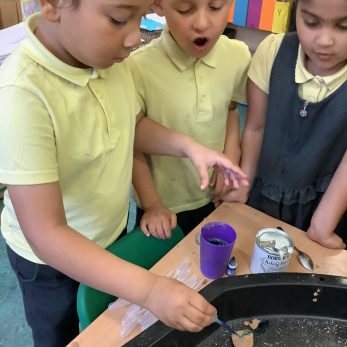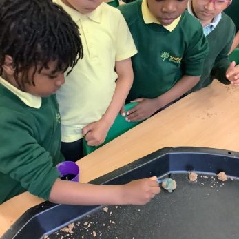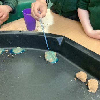 Year 1 investigated dinosaur rocks during Science Day. They poured coloured vinegar onto their handmade rocks and were amazed by the results!