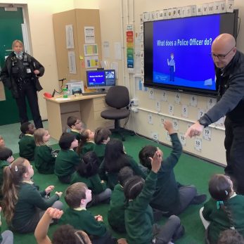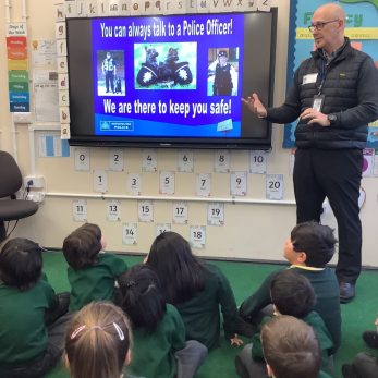 As part of Work and Enterprise Week, year 1 are learning about the role of a Police Officer. They had a visit from 3 police officers who educated them about the job they do. The children asked the police officers a lot of questions, including why they chose their job and if they went to university.