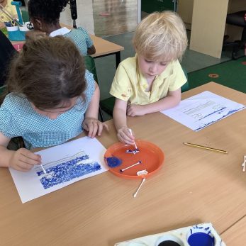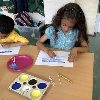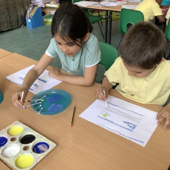 Year 1 have been practising painting in pointillism style in Art. They mixed colours to create shades of blue which they added to their seascape drawings to create a lovely, pointed effect.
