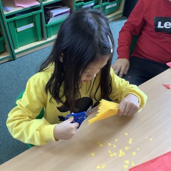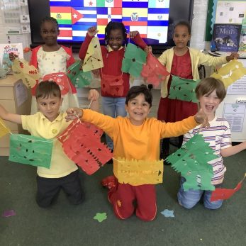 To celebrate Hispanic Day, Year 2 created Papel Picado. They made the flags using coloured tissue paper creating their own unique patterns which they displayed around the class.