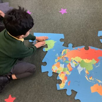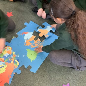 Year 2 have been busy memorising the names of continents and oceans in Geography. They created their own world map using puzzle pieces and located countries within each continent.