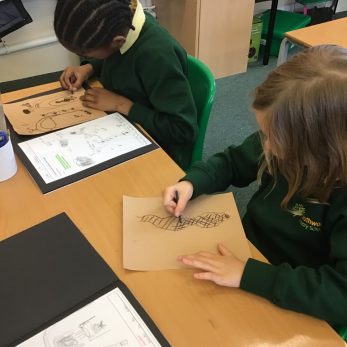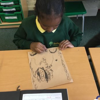 This the Autumn term Year 3 were learning about the Stone Age. In Art the children used charcoal to recreate cave drawings. They were working hard to include different charcoal techniques and to show a clear message through their drawing. Did you know that the oldest known cave paintings are more than 44,000 years old and can be found in Spain.