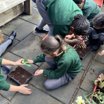 Children having gardening work shops this half term have been focusing on planting seeds which they will then look after in their classrooms. Spring is the best time to plant seeds because the showery weather gives them the water they need, and the longer days mean they have more daylight and warmth from the sun.