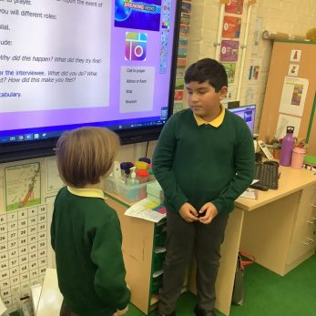 Year 3 have been learning all about the religion Islam in RE. They researched the importance of the call to prayer to Muslims and role-played as reporters asking this question to each other