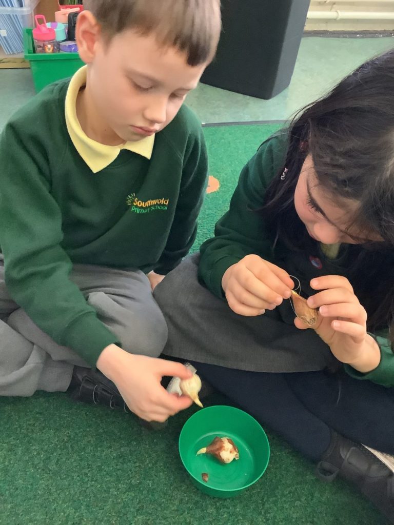 In Year 3 the children carried out an investigation to find out what makes up soil. They set up different trays with different materials in (banana skin, leaves, rubber). They will now watch to see how the materials break down in soil. Did you know that soil is a composed of five main ingredients: minerals, organic matter, living organisms, gas, and water.
