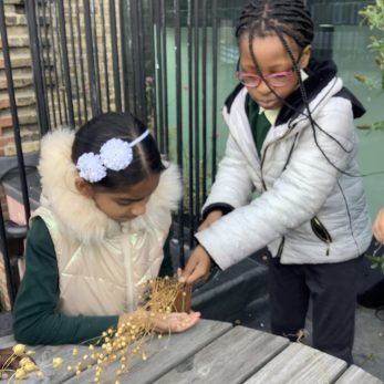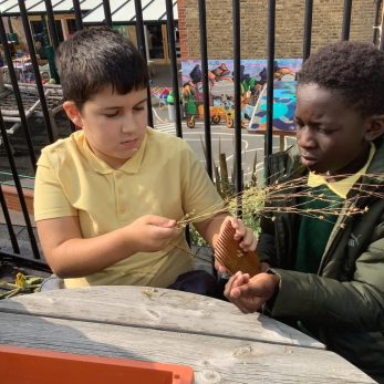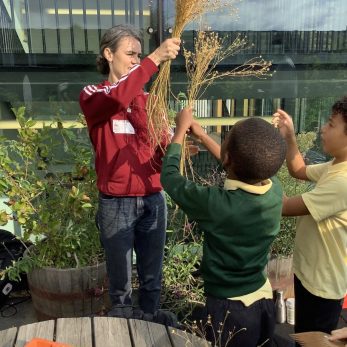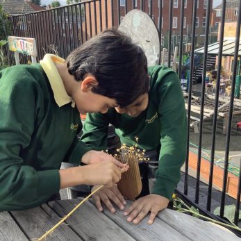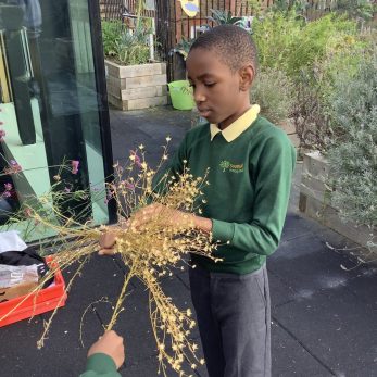 Year 5 took part in a gardening workshop where they turned homegrown flax into linen cloth. They felt the different fibres and learnt how flax and other natural fibres can be made into cloth.