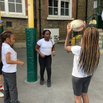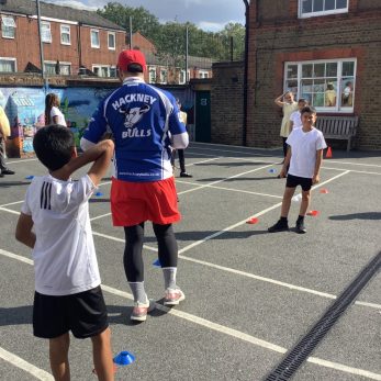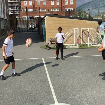 Year 6 had their first session with Hackney Rugby Club in PE. They learnt throwing and catching skills and are excited for their next lesson!